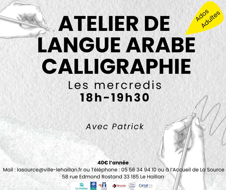 Vous souhaitez apprendre la langue arabe et sa calligraphie ? Patrick vous propose un atelier les mercredis de 18h à 19h30 pour apprendre à parler, lire et écrire la langue arabe, peu importe votre niveau, débutants comme initiés. Les ateliers ont lieu une semaine un mercredi, une semaine un vendredi.