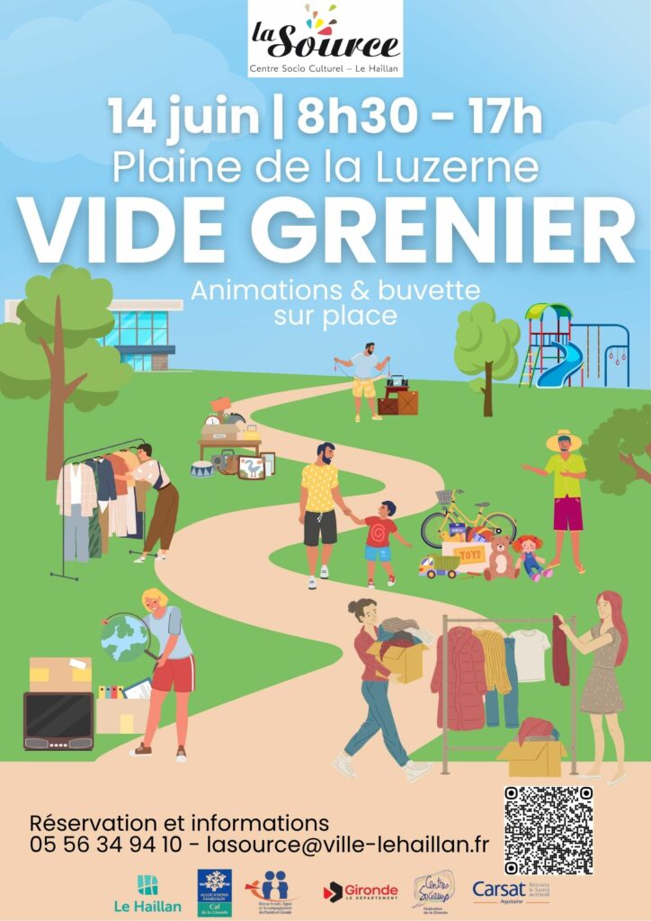 Depuis plusieurs années, nous organisons un vide grenier sur la plaine de la Luzerne. Toute personne non professionnelle, habitante ou non du Haillan, peut participer en réservant un emplacement. Cette journée est souvent une occasion de faire de bonnes affaires, mais également de passer un moment convivial.